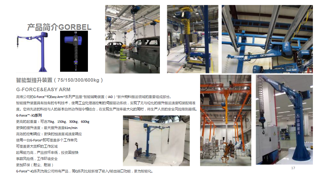 高博公司的G-Force'和Easy Arm系列產(chǎn)品是“智能輔助裝置(AD)"“新興物料搬運(yùn)領(lǐng)域的重要組成部分。